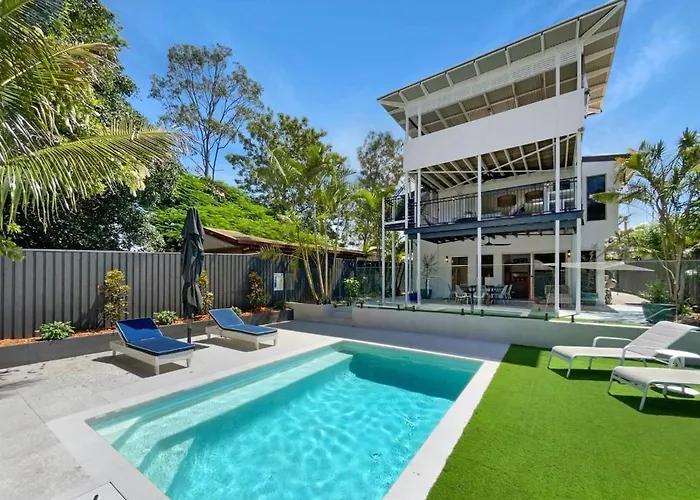 Luxury 4Bd Retreat With Pool - 400M To Beach Golden Beach villa ligt in de Golden Beach wijk, binnen 5 minuten wandelafstand van Bill's Boat & Bike Hire, en biedt uitzicht op de tuin. Dit vakantiehuis biedt gasten Wi-Fi en gratis privéparkeerplaatsen, en ligt op een korte afstand van Caloundra Regional Art Gallery.